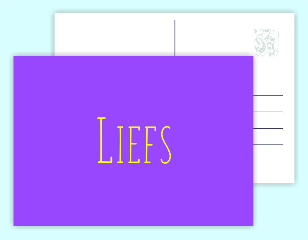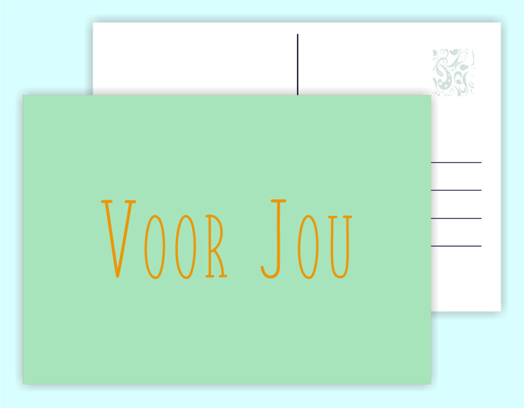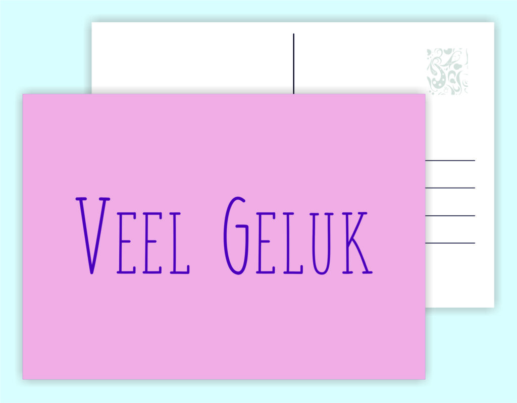 Enkele A6-kaart (148x105mm) gedrukt op stevig 260-grams papier. De achterkant is voorzien van een adreslijn en ruimte voor een persoonlijke boodschap. Elke kaart heeft een unieke, warme boodschap: van beterschap tot verjaardag wens, van troost tot een simpel “dankjewel”.
