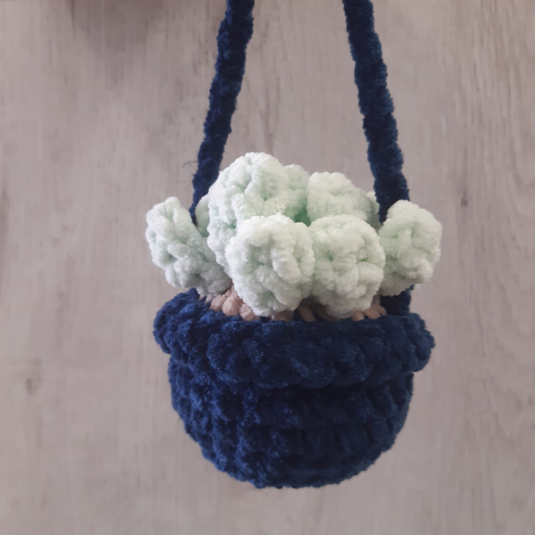 Dit schattige, handgemaakte hangplantje is een vrolijke blikvanger voor elke kamer. Het plantje zit in een gehaakt potje van ca. 7 cm groot en is perfect om op te hangen aan een plank, in een kinderkamer of aan een sleutelhaakje voor een speelse touch.